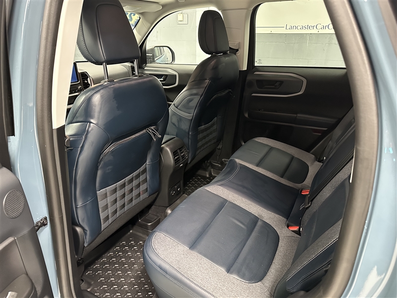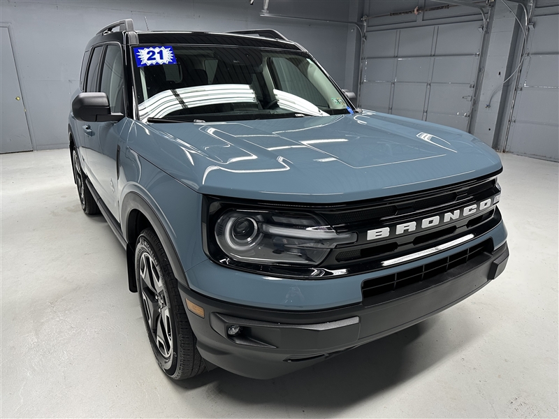 Traded in right here at Lancaster Car Company! CARFAX guaranteed with a great service history and still under Ford's bumper to bumper factory warranty! Leather interior, sunroof, blind spot monitoring, heated seats, heated steering wheel, B and O Sound System, Sirius Satellite Radio, usb port, auxiliary input, bluetooth, steering controls, remote start, back up camera, parking assistant, side airbags, dual front airbags, AC, alloy wheels, and 4 nice Michelin tires on this LIKE NEW 2021 Ford Bronco Sport Outer Banks 4x4! These Bronco's get up to 28 miles per gallon! This is a great looking Bronco with more options than most advertised online! Come and check it out before its gone!